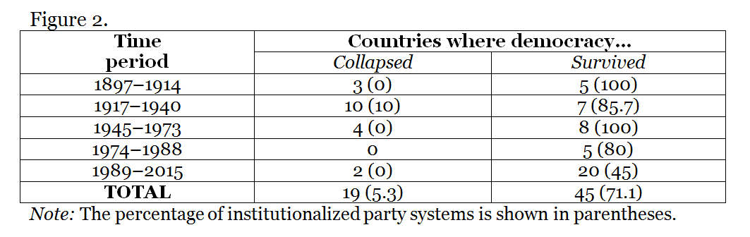 What scholars, politicians, and practitioners should bear in mind, though, is that a continuous lack of ISP puts democracy in peril. In fact, the party systems of 18 of the 19 countries where democracy collapsed were very weakly institutionalised.