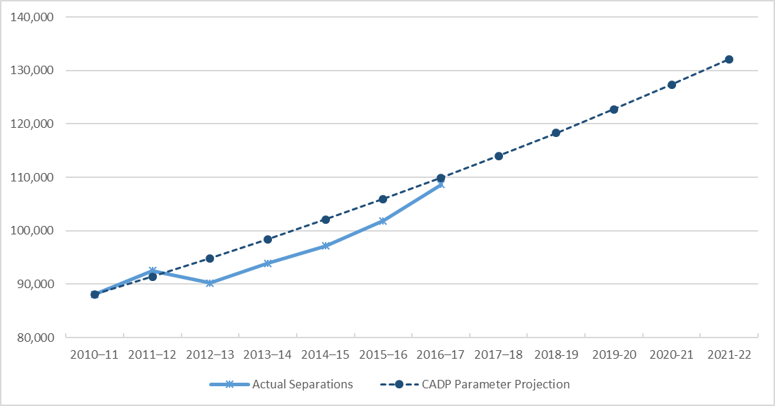 Chart 1: Acute Patient Separations - ACT Public Hospital System and CADP Planning Assumptions